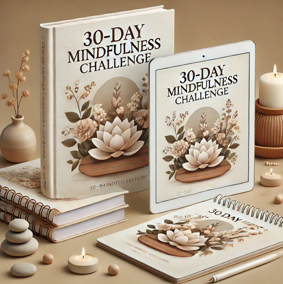 The 30-Day Mindfulness Challenge is a guided workbook and planner designed to help you cultivate mindfulness, reduce stress, and regain control of your mental well-being. Whether you're new to mindfulness or looking to deepen your practice, this challenge provides simple yet powerful daily exercises to bring more awareness, balance, and inner peace into your life.
